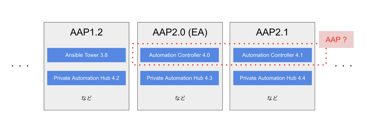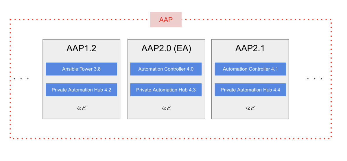 最近では、AAP と Automation Controller などの各プロダクトのバージョンが 1:1 の対応ではなくなりました。